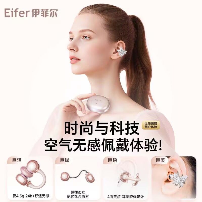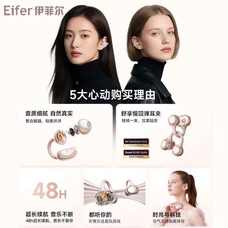 - Rose Gold【Comes with bowknot earrings】360° surround sound effect + Bluetooth 6.0 chip + skin-friendly silicone