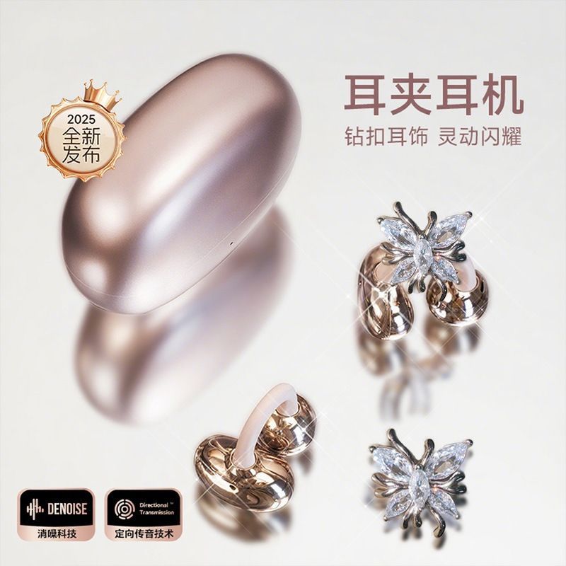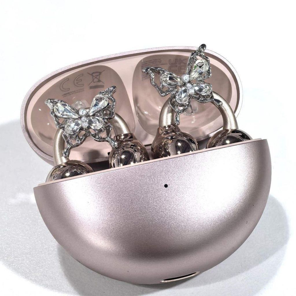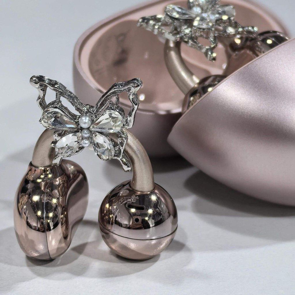 - Rose Gold【Comes with bowknot earrings】360° surround sound effect + Bluetooth 6.0 chip + skin-friendly silicone
